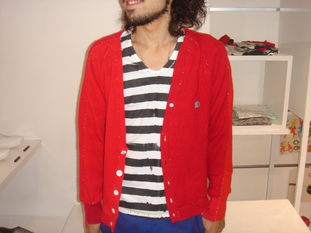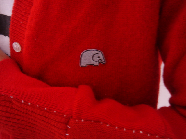 まずは定番の象マークが可愛い手縫いのカーディガンです。